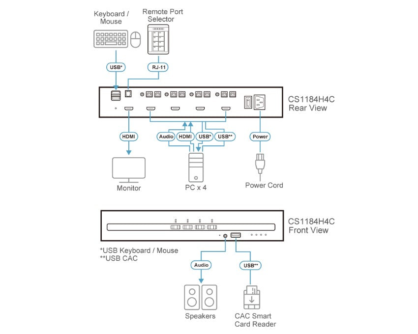 1x CS1184H4C 4-Port USB HDMI Secure KVM Switch with CAC