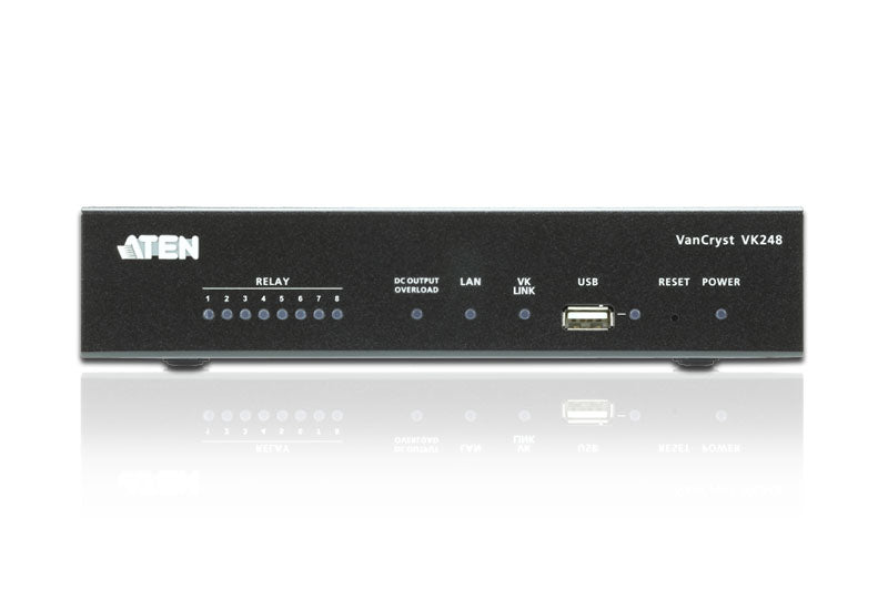 The VK248 8-Channel Relay Expansion Box provides an additional eight channels of relay output for a flexible expansion of the ATEN Control System. This allows users to control additional devices such as screen, projector lifts and blinds in environments where more devices are required. With the advantage of an Ethernet-based connection, the expansion box easily connects to the VK2100 Control Box via a LAN connection from a variety of locations across a network.