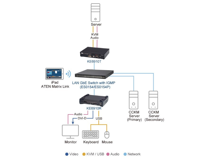 When integrated with the CCKM, the KE6910 supports more advanced features such as authentication lock, connection redundancy, disconnection alert, boundless switching, “Push” and “Pull”, video wall and multi-display setups, and profile scheduling that provide uninterrupted access with quick and easy control tools to use the KE6910 over a network.