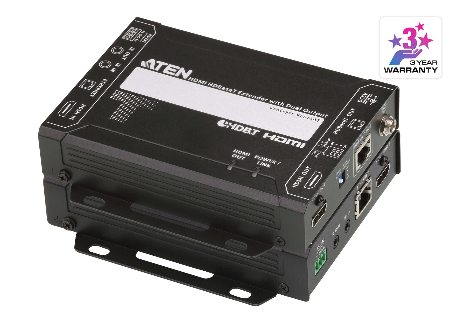 Aten HDMI HDBaseT Extender with Dual 4K Output, one local HDMI output, supports up to 4K@70m (Cat 5e/6) and 100m (Cat 6A), extends RS232 and IR