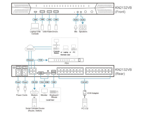 Aten 1-Local/2-Remote Access 32-Port Multi-Interface Cat 5 KVM over IP Switch
