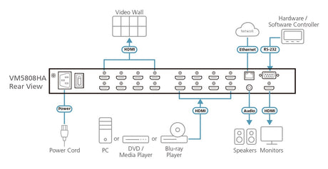 Aten 8 x 8 HDMI Matrix Switch with Scaler, Seamless Switching, FrameSync and Intuituve web GUI
