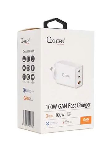 Oxhorn 100W USB GaN Type-C fast Charger, 2x USB-C, 1x USB-A Fast Charger