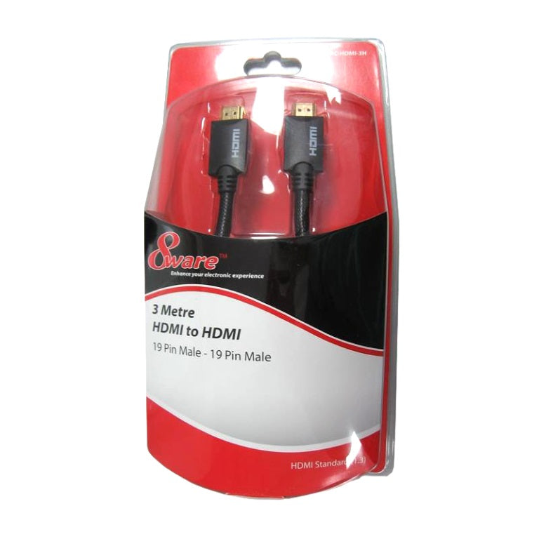8Ware HDMI Cable 3m - Retail Pack V1.4 19pin M-M Male to Male Gold Plated 3D 1080p Full HD High Speed with Ethernet